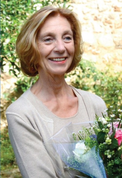 Une belle photo de Nicole recevant un bouquet de fleurs bleues blanc rouge nous y accueille.