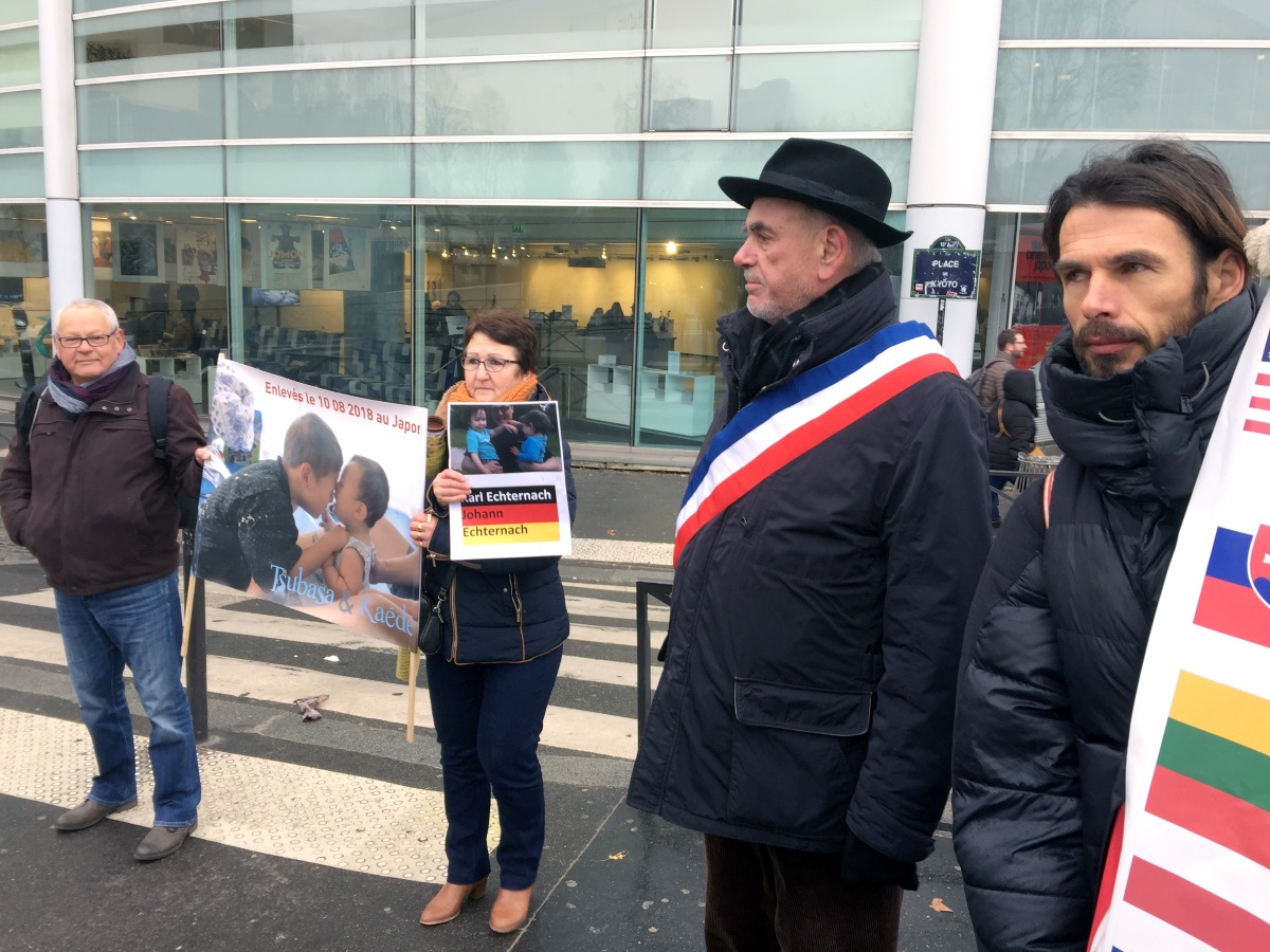 Au côté des associations de parents devant le centre culturel japonais à Paris.